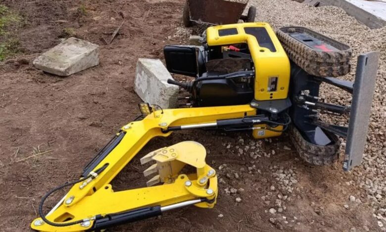 Трагедия произошла при использовании мини-экскаватора: одна из гусениц техники съехала на наклонный участок насыпи строительного гравия.