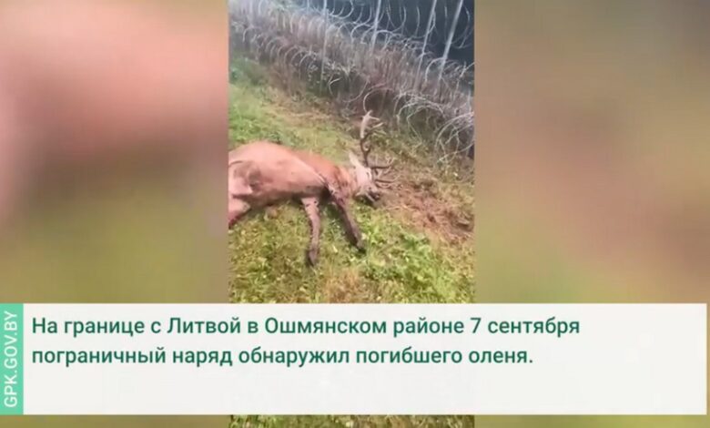 7 сентября на белорусско-литовской границе в Ошмянском районе пограничный наряд обнаружил тело погибшего оленя. Животное, пытаясь пересечь европейское пограничное заграждение, запуталось в колючей проволоке и не смогло освободиться.