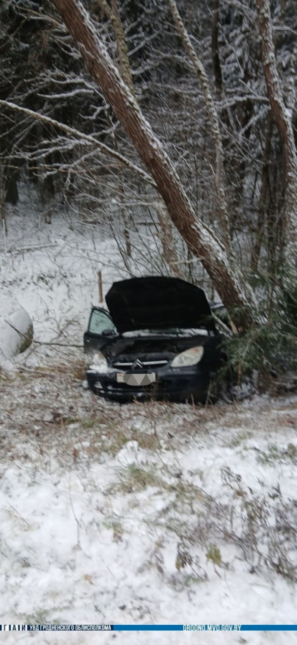 24 ноября в Ошмянском районе произошла серьезная авария с пострадавшим. Молодая женщина за рулем «Ситроена» не справилась с управлением и врезалась в дерево.