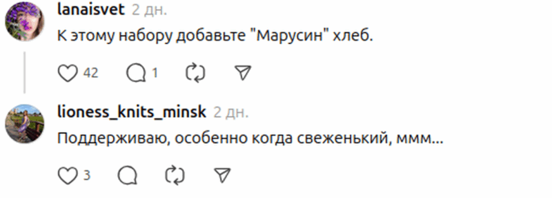 Её пост собрал множество лайков и отзывов. Покупатели наперебой хвалили слуцкую выпечку. Особой любовью пользуются необычные сорта вроде «Шпинатного» и «Рапсового» хлеба. «Поздравляю, у вас слуцко-хлебная зависимость. Она неизлечима», — шутят в комментариях.