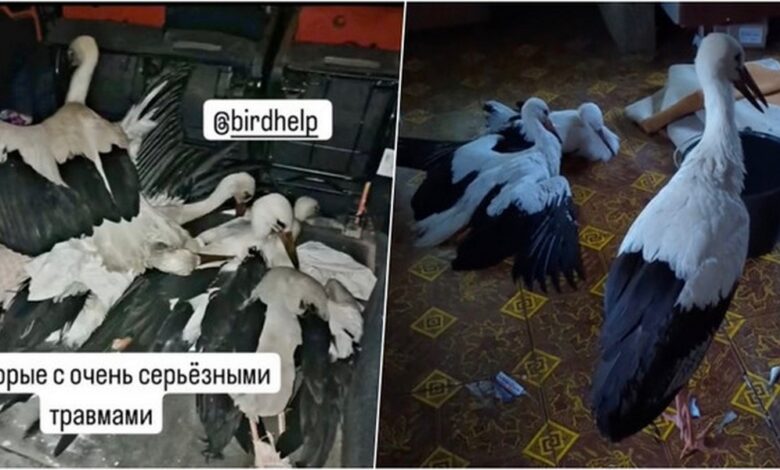 — Их везут и везут, сколько точно птиц, мы не знаем. У аистов переломаны крылья и лапы, в ранах опарыши. Мы оказываем первую помощь, некоторых птиц уже отвезли к ветеринарам, они на операции.