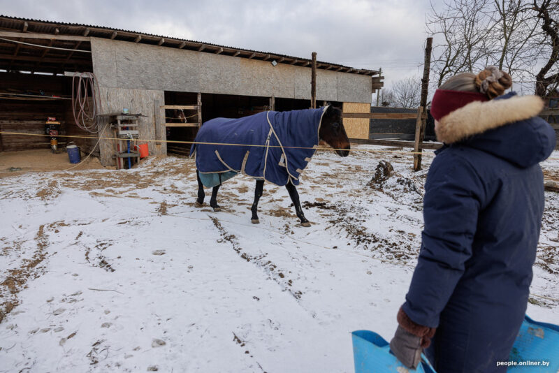 Пока Катя занята, её собака Чуся пытается «пасти» лошадей, которые относятся к ней с терпением, как бабушки к резвому ребёнку. Сама Катя переехала в деревню под Смолевичи несколько лет назад. Любовь к лошадям — с детства. Решающим стал случай в конноспортивной школе, когда её любимого коня Павиана увезли на мясокомбинат. «Я сама его в машину завела… Видимо, тогда во мне и зародилась мысль, что кто-то должен этим заниматься», — вспоминает она.