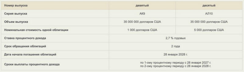• Облигация АК9 — номиналом $1000,