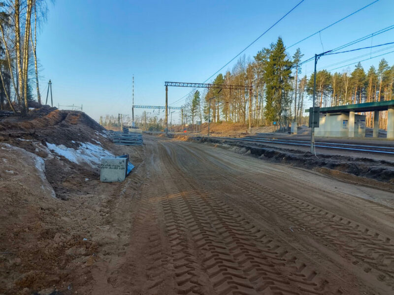 Здесь не только готовят опоры под сеть, но и полностью расчистили территорию для дополнительного пути. Бульдозеры ровняют грунт и насыпают песок. В некоторых местах еще предстоит поработать с путепроводами и удлинить водопропускные трубы.