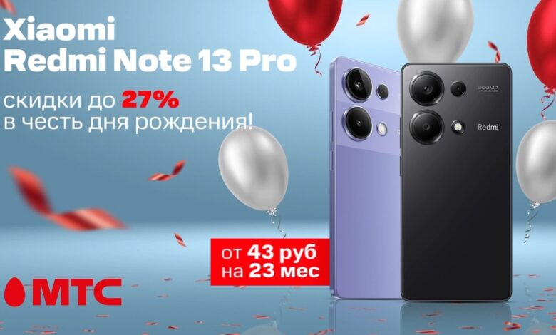 Праздничная скидка до 27% на смартфон Xiaomi Redmi Note 13 Pro в МТС