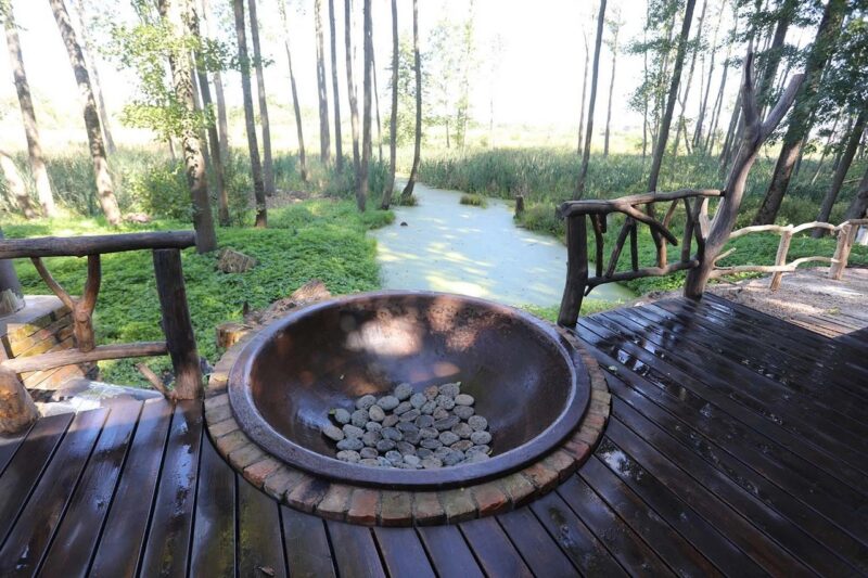 Это вариант для полного расслабления и отдыха от всех дел. Вы приезжаете в старинную усадьбу и попадаете в банный комплекс, где воссоздали уникальные методы парения по записям пятивековой давности. Можно выбрать панскую баню, аромапарение или парение в карпатском чане. В тёплую погоду — покачаться на больших деревянных качелях на свежем воздухе.