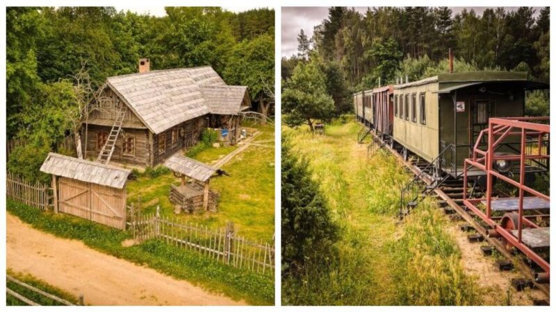 Пожалуй, самое атмосферное место в подборке. Усадьба «Забродье» — это три деревенских домика в рустикальном стиле для проживания, сохранённая 200-летняя баня, уютное кафе, часовня и экспозиционный поезд «Орлик». Здесь собраны коллекции четырёх эпох: Первая мировая война, ретроавтомобили, СССР и белорусский быт.