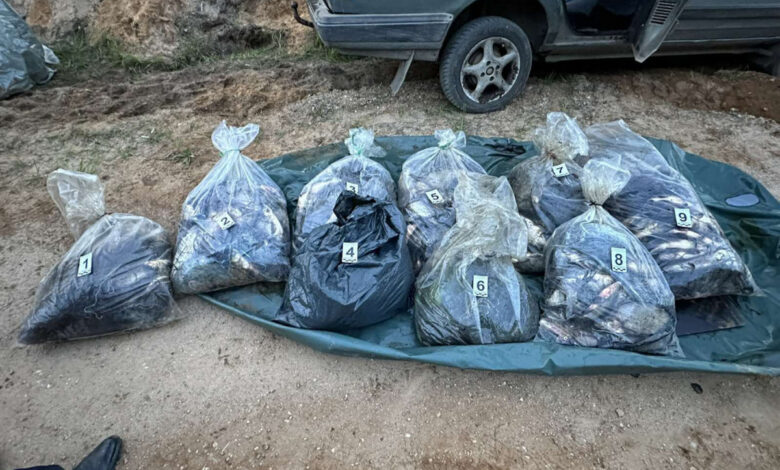 В ходе проведения полевого мероприятия сотрудниками Любанской межрайонной инспекции на лесной дороге вблизи водохранилища «Любанское» для проверки был остановлен автомобиль. При осмотре транспортного средства в багажном отделении были обнаружены 9 мешков с сетями, в которых находилась рыба, лодка, 5 мешков с сетями без рыбы и подсачек. В машине находились двое жителей Стародорожского района.