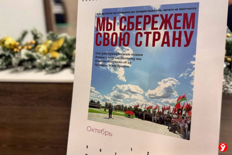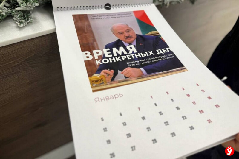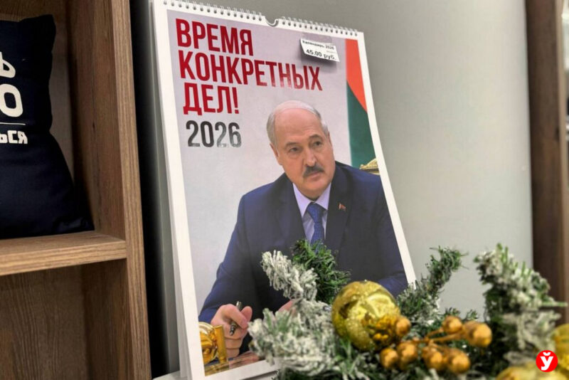Параллельно в фирменном магазине появился и другой новогодний товар — календарь на 2026 год. Его страницы с фотографиями и цитатами Александра Лукашенко посвящены темам развития страны и ответственности.