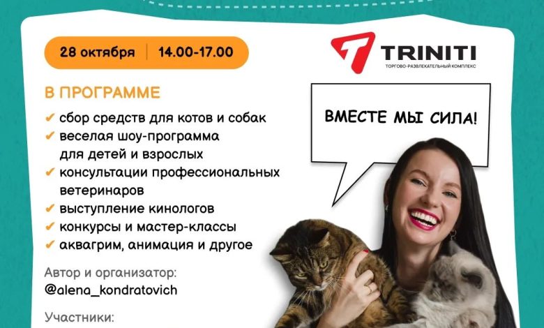 В ближайшую субботу, 28 октября, в ТРК Triniti пройдет благотворительная акция в поддержку бездомных животных «Дай лапу 2.0». Всех желающих приглашают в атриум у фонтана с 14.00 до 17.00.