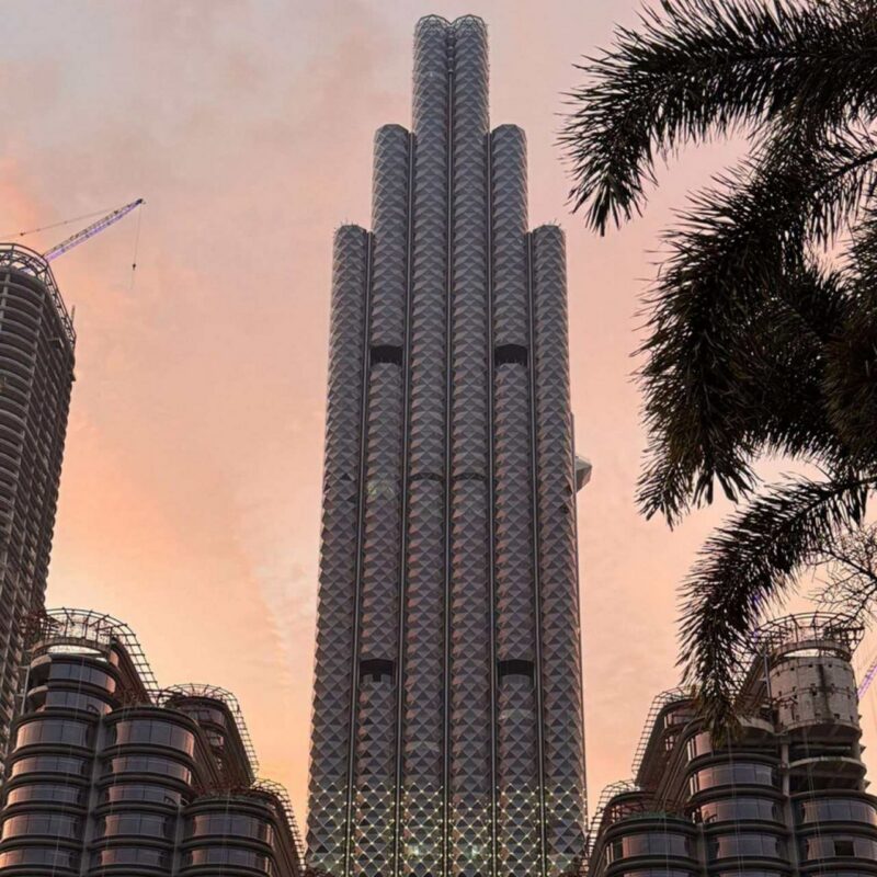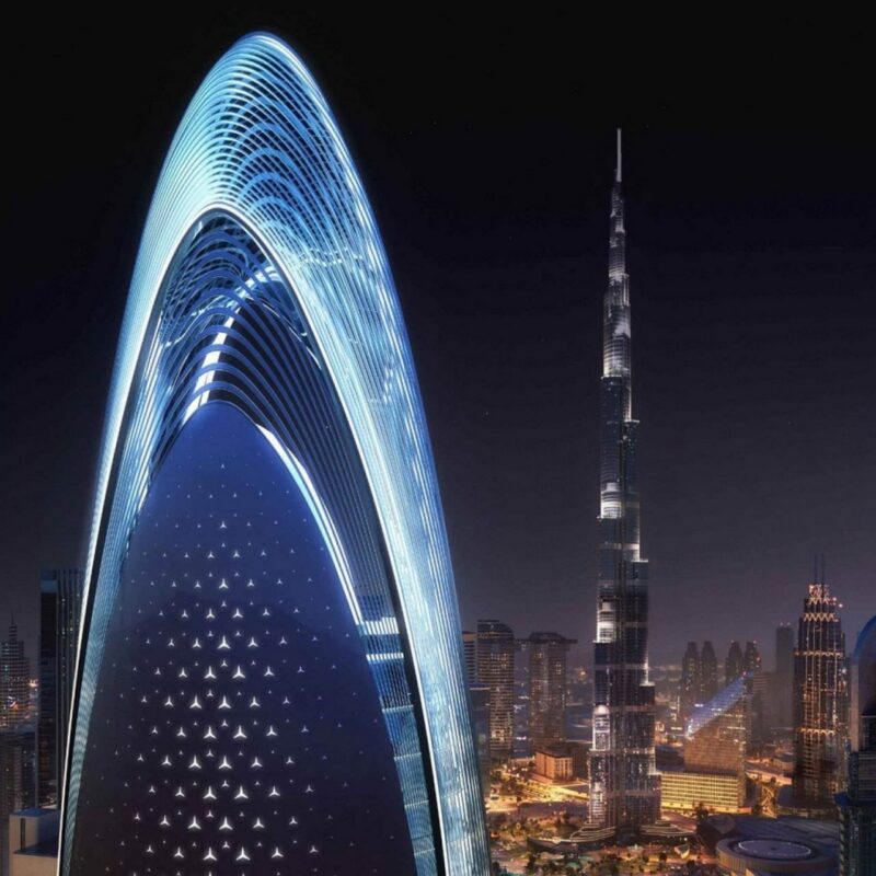 Дубай остается Дубаем. Там, неподалеку от Бурдж-Халифы, появится жилой комплекс Binghatti высотой 341 метр. Это первый в мире проект, сделанный в коллаборации с автомобильным брендом Mercedes-Benz. Фасады украсит повторяющийся узор в виде трехлучевой звезды, вписанный в плавные линии здания.