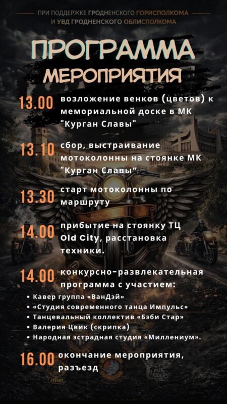 18 апреля (суббота) на внутренней парковке торгового центра OldCity состоится ежегодное открытие мотосезона Гродно-2026.