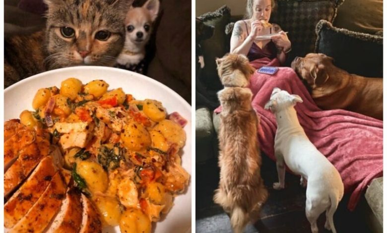 Сложно расслабиться, когда на тебя смотрит пара (а иногда даже больше!) голодных глаза, в которых так и читается: «Дай мне кусочек! Ну хотя бы один!».