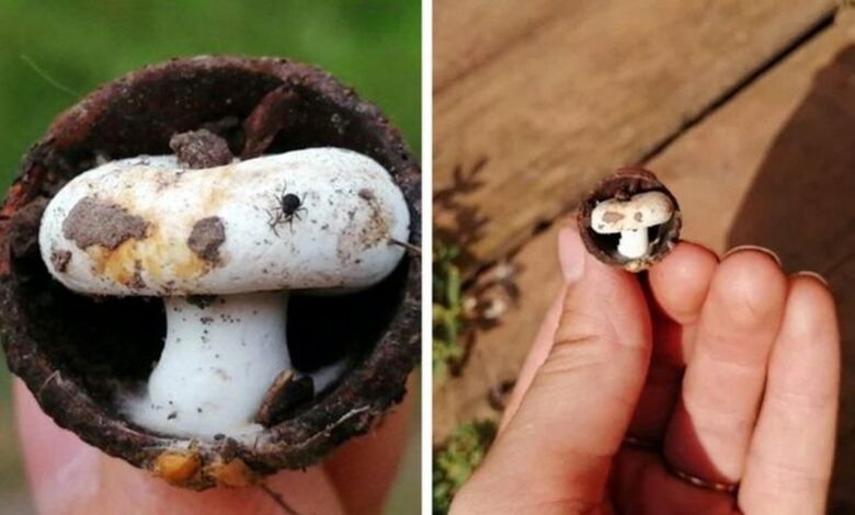 Необычный гриб, выросший внутри желудя