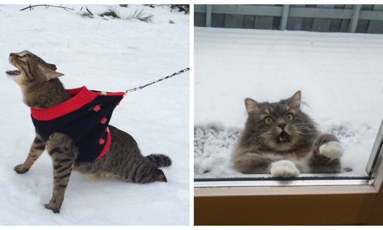 Те же коты, которым лично пришлось узнать, что такое мороз, совсем этому не рады. Смотрите сами!