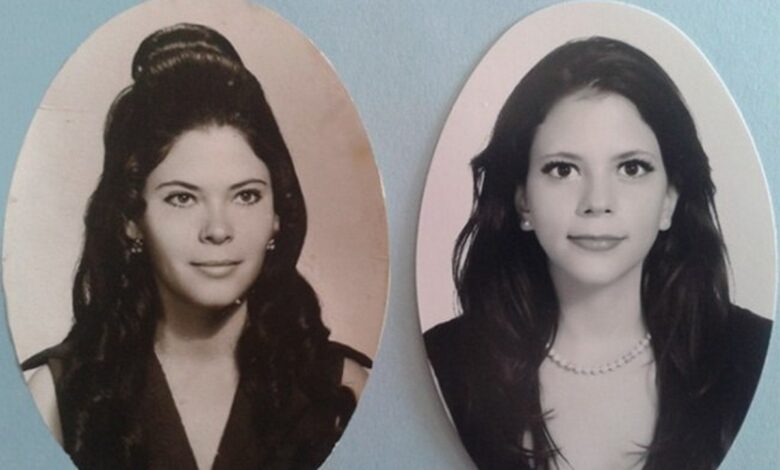 Фото матери и дочери из их школьных альбомов.