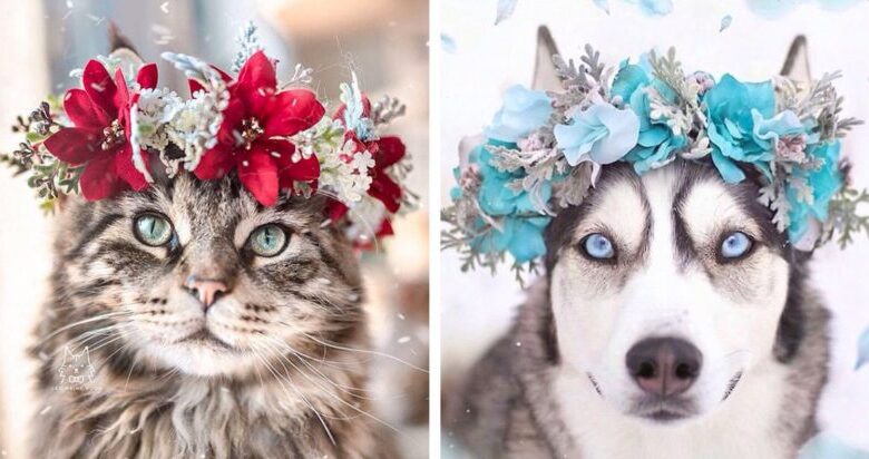 25 домашних любимцев в цветочных венках