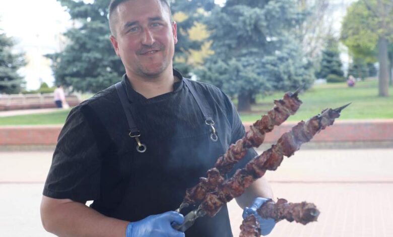 Что-то на вкусненьком: Артур Пагуба готовит аппетитный шашлык для жителей и гостей Гродно