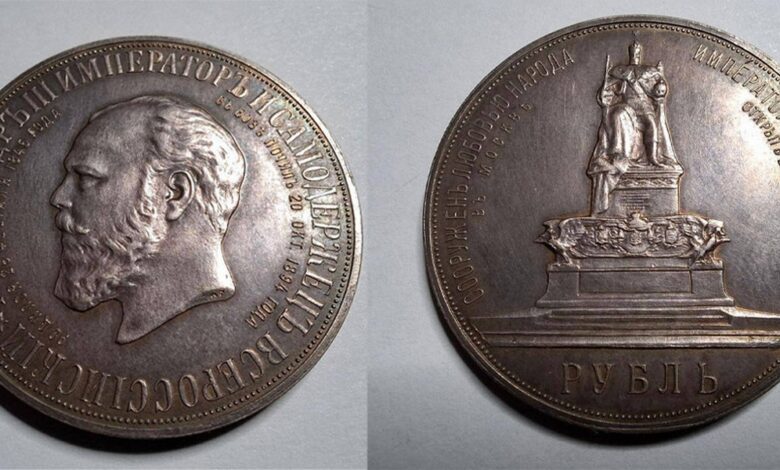— Монета посвящена открытию памятника императору Александру III, который стоял у Храма Христа Спасителя в Москве до 1918 года. На реверсе — изображение монарха, восседающего на троне, на аверсе — его портрет в профиль. Эти рубли считаются первыми памятными монетами XX века, что делает их особенно ценными в мире коллекционеров.