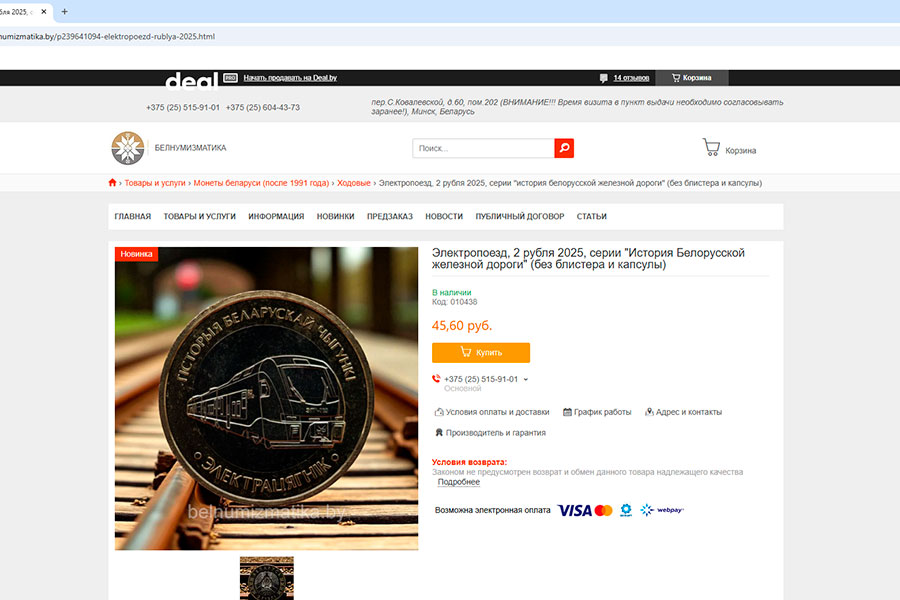 На сайте Нацбанка сообщается, что сейчас монета к покупке недоступна – нет в наличии. Зато ее можно купить на сайте Белнумизматики за Br45,1, то есть в 22,5 раза дороже номинала.