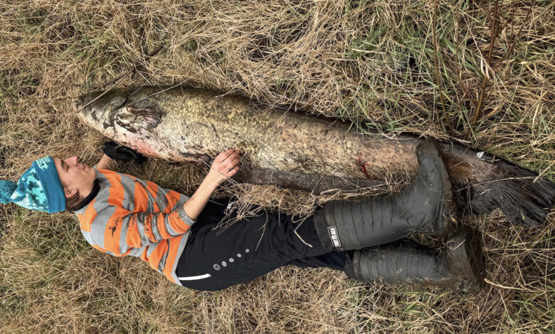 Фото с уловом получилось внушительным: сом выглядит так, будто мог бы поймать рыбака, а не наоборот. Рыбу на уху не отправили, а вернули обратно в воду.