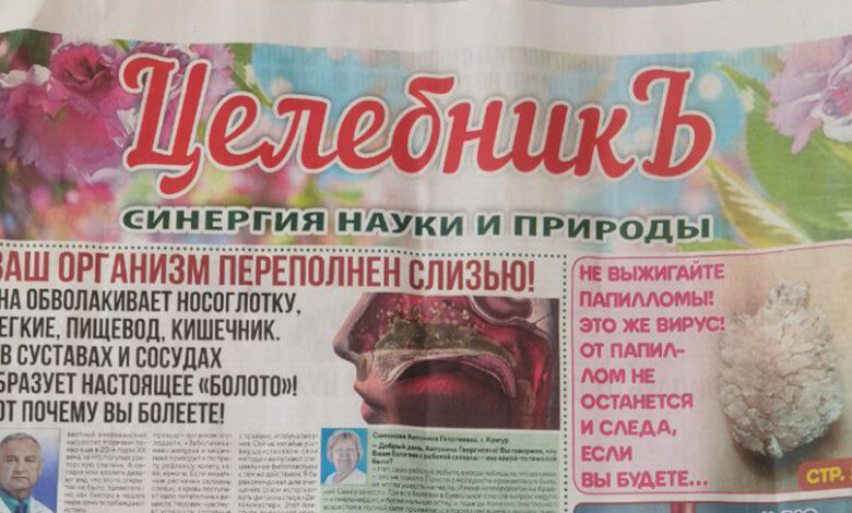— В Серебрянке постоянно в почтовые ящики вкидывают газету «Целебникъ». Люди пенсионного возраста расхватывают экземпляры и уносят домой. Те, кто помоложе, просто выкидывают в корзину для макулатуры. Я же взял наконец почитать: мне было интересно, что это за газета. Отнес ее на работу — читали всем отделом. И были в шоке. У газеты нет выходных данных, вообще никаких. Только почитайте статьи! — заинтриговал минчанин. Что ж, читаем.