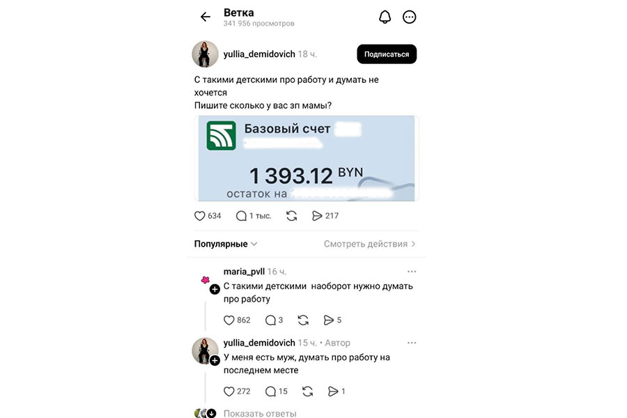 Неожиданный повод для жарких споров появился в белорусских соцсетях. Пользовательница Threads опубликовала размер пособия по уходу за ребенком — чуть более 1393 рублей — и честно призналась: с такой суммой «про работу и думать не хочется».