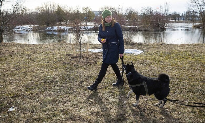 С Ириной мы встречаемся как раз во время ее работы: женщина за деньги выгуливает метиса лайки по имени Шона. Я пытаюсь погладить собаку, но та не поддается, отворачивается.