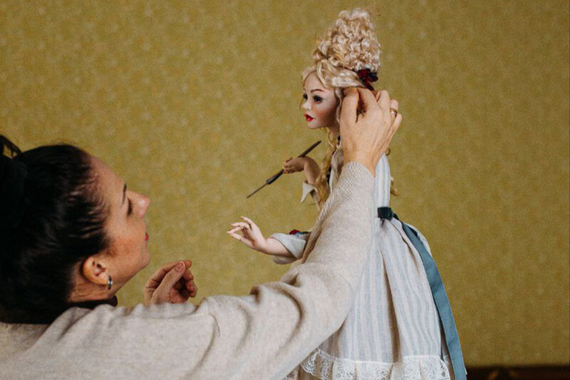 Зато потом начинается магия — роспись. Тонкой кистью она прорисовывает брови, губки, веснушки, добавляет тени. Кукла будто оживает и начинает «смотреть». А завершает образ одевание. Ирина обожает подбирать кружева, шелк и крошечные пуговки. Говорит, что когда дочери выросли и перестали давать себя наряжать, она просто перенесла эту радость на кукол.