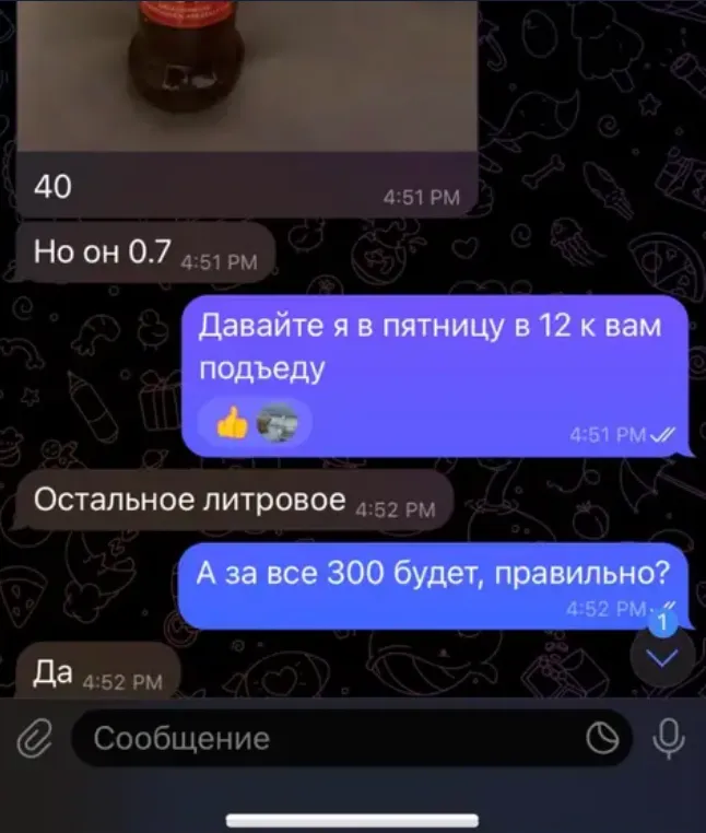 Согласно материалам административных дел, бизнес-леди из Бреста организовала продажу алкогольных напитков через группу в мессенджере Telegram. Товары приобретались в магазинах беспошлинной торговли («duty free»). В ходе контрольной закупки зафиксирована реализация партии алкоголя, включая ром, водку и бренди.