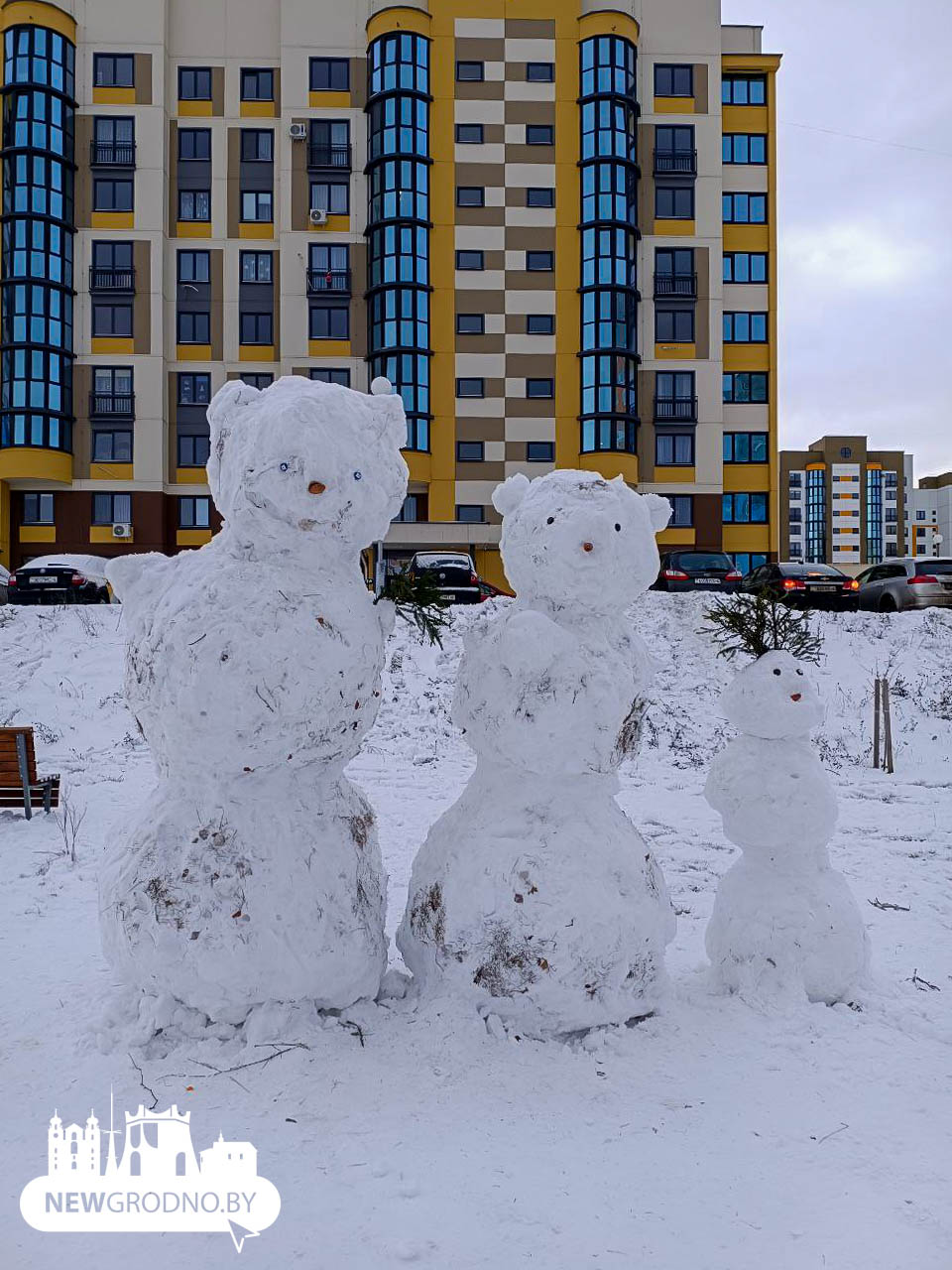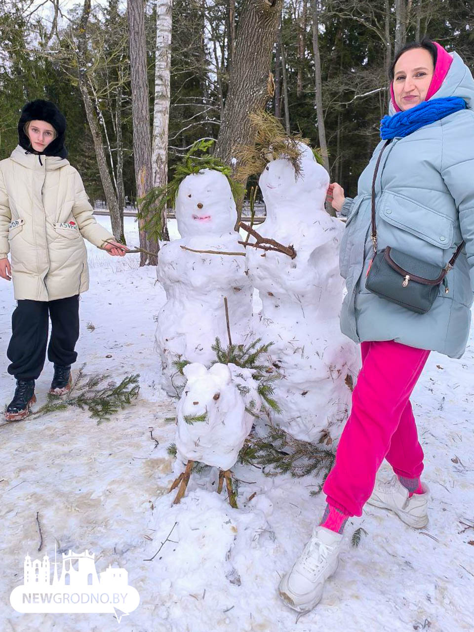 В Гродно снежные «болваны» появились едва ли не в каждом дворе. Иногда это не один снеговик, а целая семейка: папа, мама, дети, даже домашние питомцы. Причем не всегда это собачки.