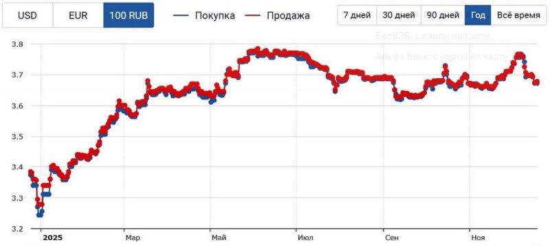 Доллар традиционно считался «тихой гаванью». Но в 2025‑м он неожиданно просел. Купив $2875 по курсу 3,478 BYN, к декабрю вы вернули лишь 8443 BYN. Убыток составил 15,6 %. Это стало шоком для тех, кто десятилетиями полагался на доллар как на надежный актив.