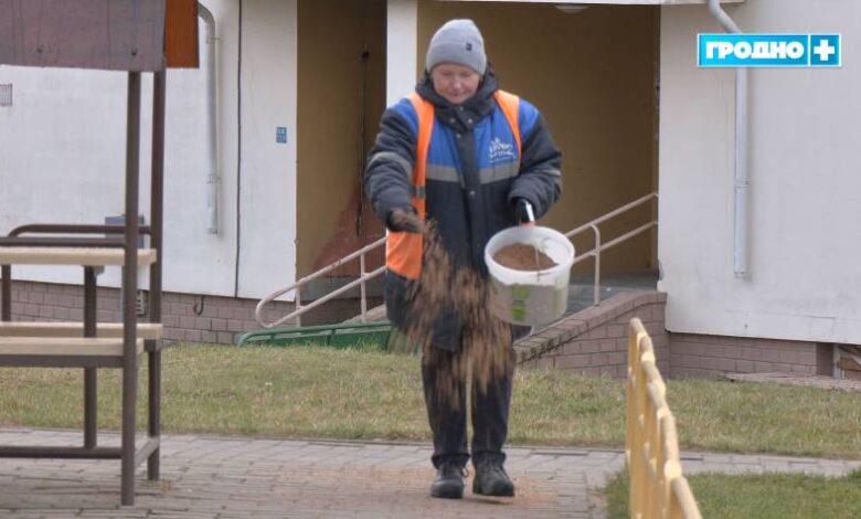 В Гродно коммунальные службы заранее обработали дороги смесью соли и песка. Как сообщает телеканал Гродно Плюс, по прогнозам синоптиков, вечером температура опустилась до –8 градусов, что может привести к осадкам и образованию гололёда.