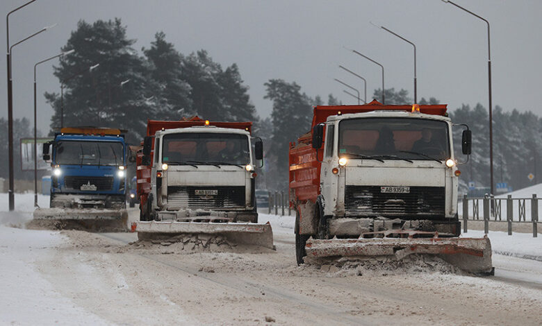 Круглосуточно идет уборка снега и обработка песчано-солевой смесью дорожного покрытия в Гродно.