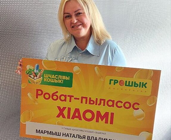 Весь сентябрь в сети дискаунтеров «Грошык» можно было не только выгодно закупиться, но и претендовать на выигрыш одного из крутых призов. В их числе были крупные денежные суммы 30 000, 40 000 и 70 000 белорусских рублей, 5 современных телевизоров Philips, 10 роботов-пылесосов Xiaomi и подарочные сертификаты на покупки на 20 рублей. В числе счастливых победителей рекламной игры оказалась и гродненка Наталья Мармыш, которая выиграла робот-пылесос Xiaomi.