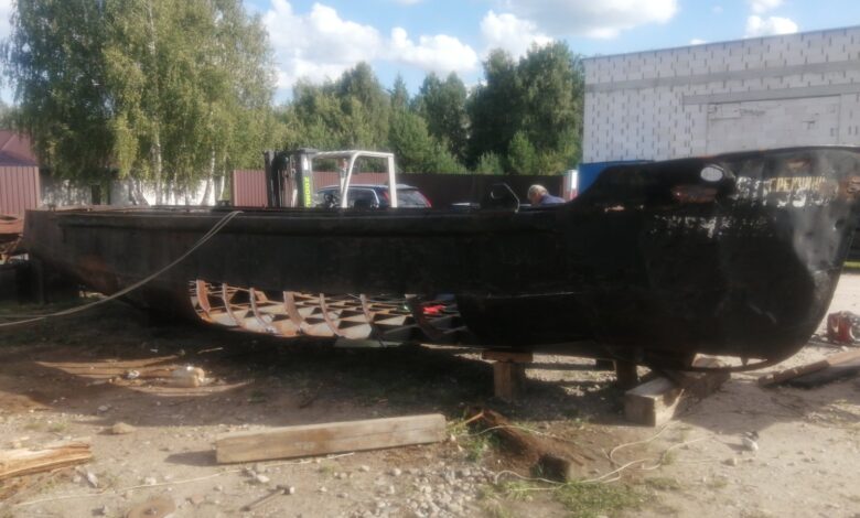Катер приобрели, доставили в деревню Жиличи и начали масштабную реконструкцию: заменили двигатель, перепланировали корпус.