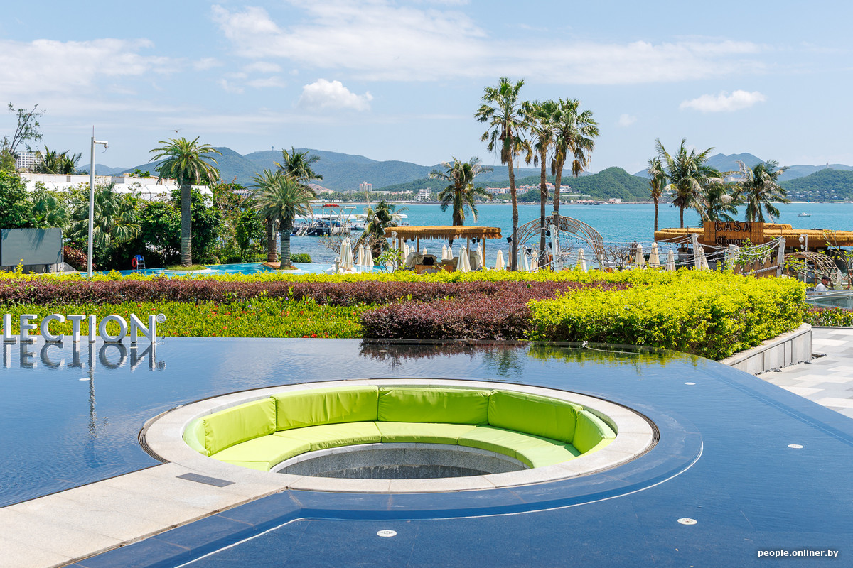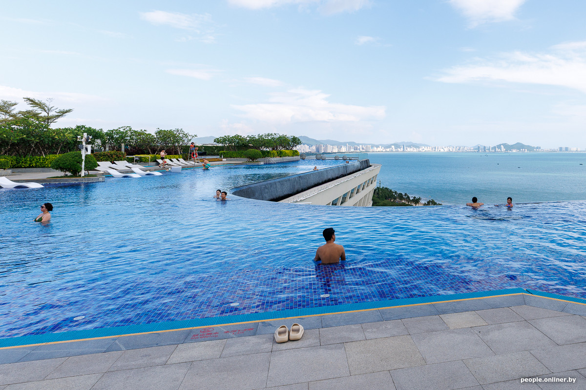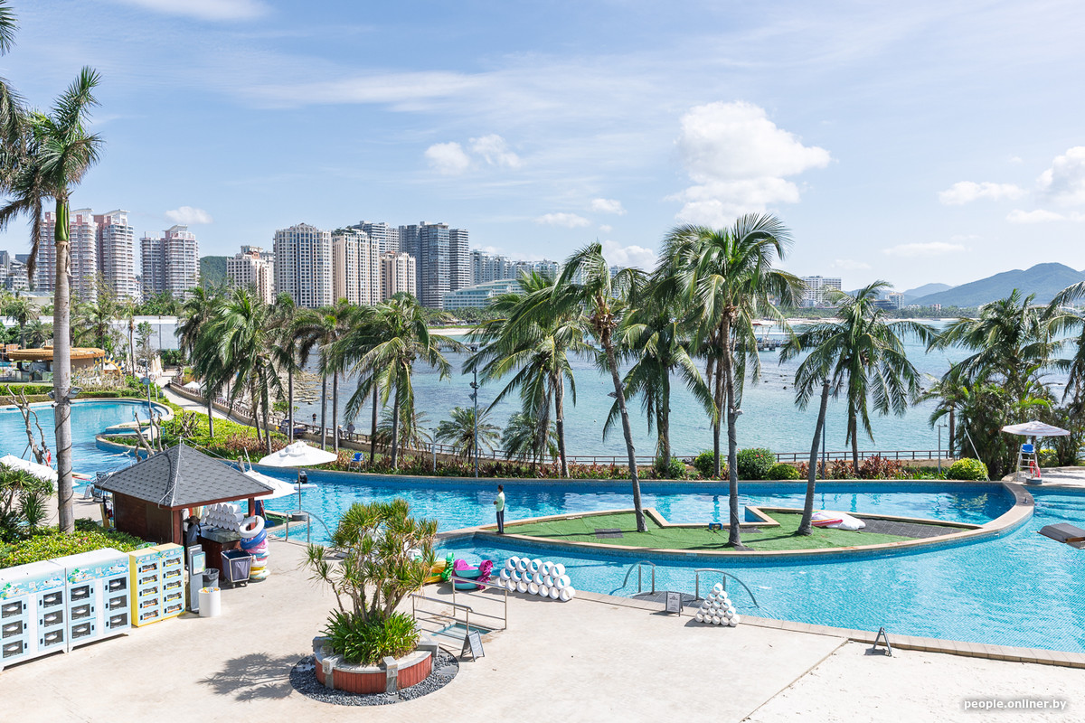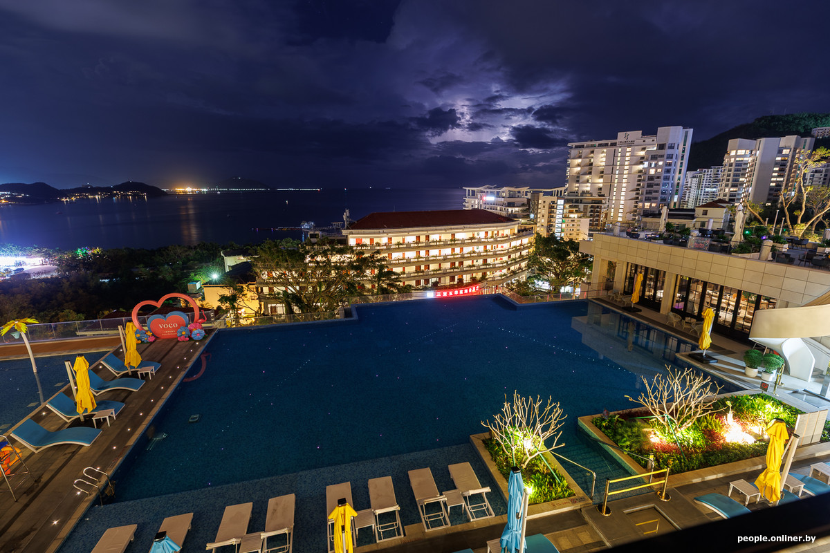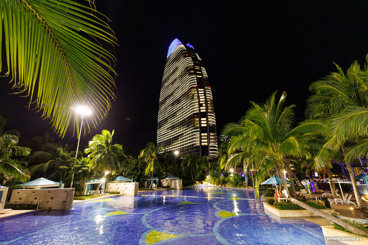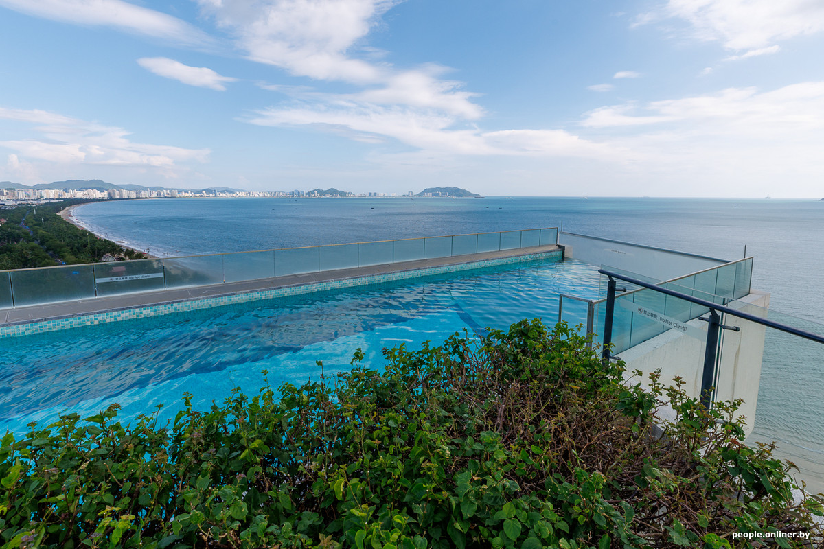 А вот еще один «лакшери-вариант» в городской бухте. Фишка Sanya Conifer Resort — в видовых номерах и инфинити-бассейне на крыше. Ночь здесь стоит дороже $100, но нам подсказали, что за $40 можно приехать и просто почилить в бассейне на крыше, включен ужин в формате шведского стола. Помечайте себе как один из вариантов для приятного вечера в Санье.