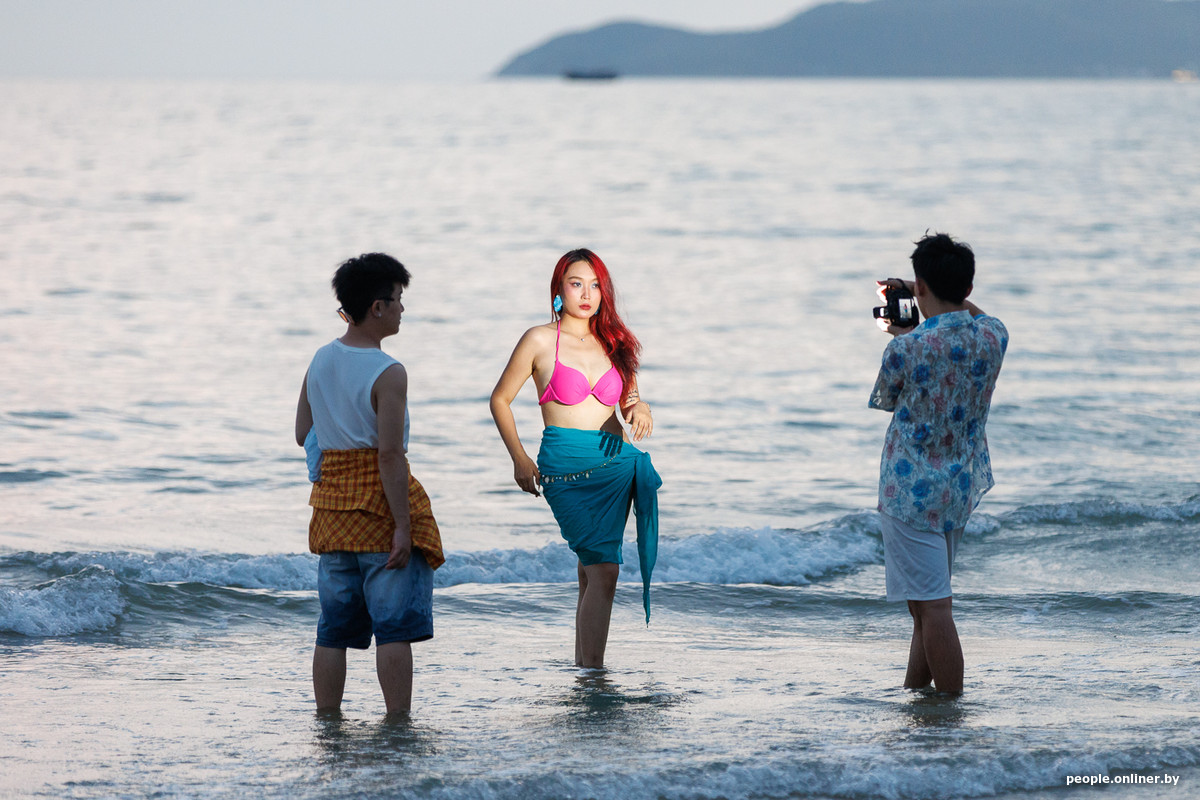 Лежаки и зонтики в Санья Бэй предоставляют отели, но четко этот момент никто не контролирует (браслетов, как в Турции, мы не наблюдали). По ощущениям, всем желающим шезлонгов хватает. В бухте в основном селятся китайцы, которые вместо пляжа днем штурмуют кафешки или достопримечательности. Зато на закате вы увидите сотни молодых людей, которые устраивают массовую фотосессию.