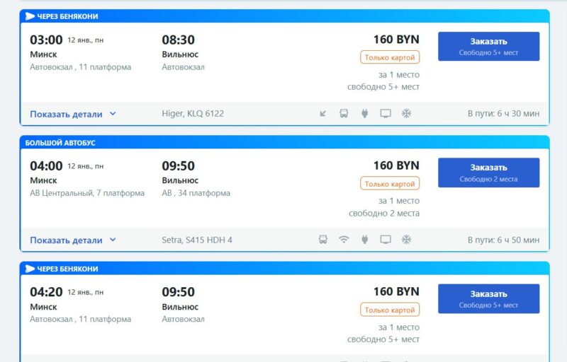 О посленовогоднем снижении цен объявили перевозчики, работающие на литовском направлении – это компании «Ваджен транс» и UAB Gromora. Речь о рейсах «Минск-Ивье-Вильнюс» (следует через пункт пропуска «Бенякони» с заездом в аэропорт Вильнюса) и «Минск-Каунас-аэропорт Каунас», рассказывает журнал Атлас.