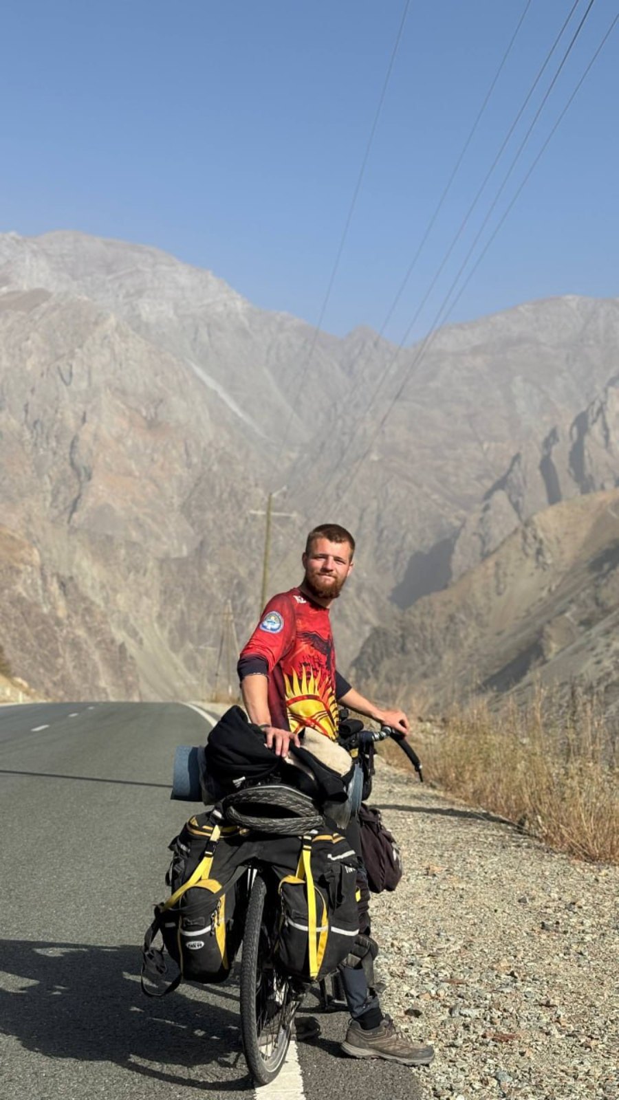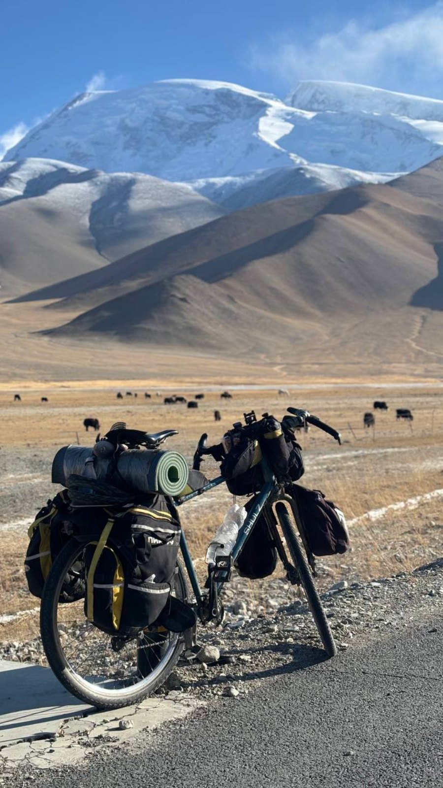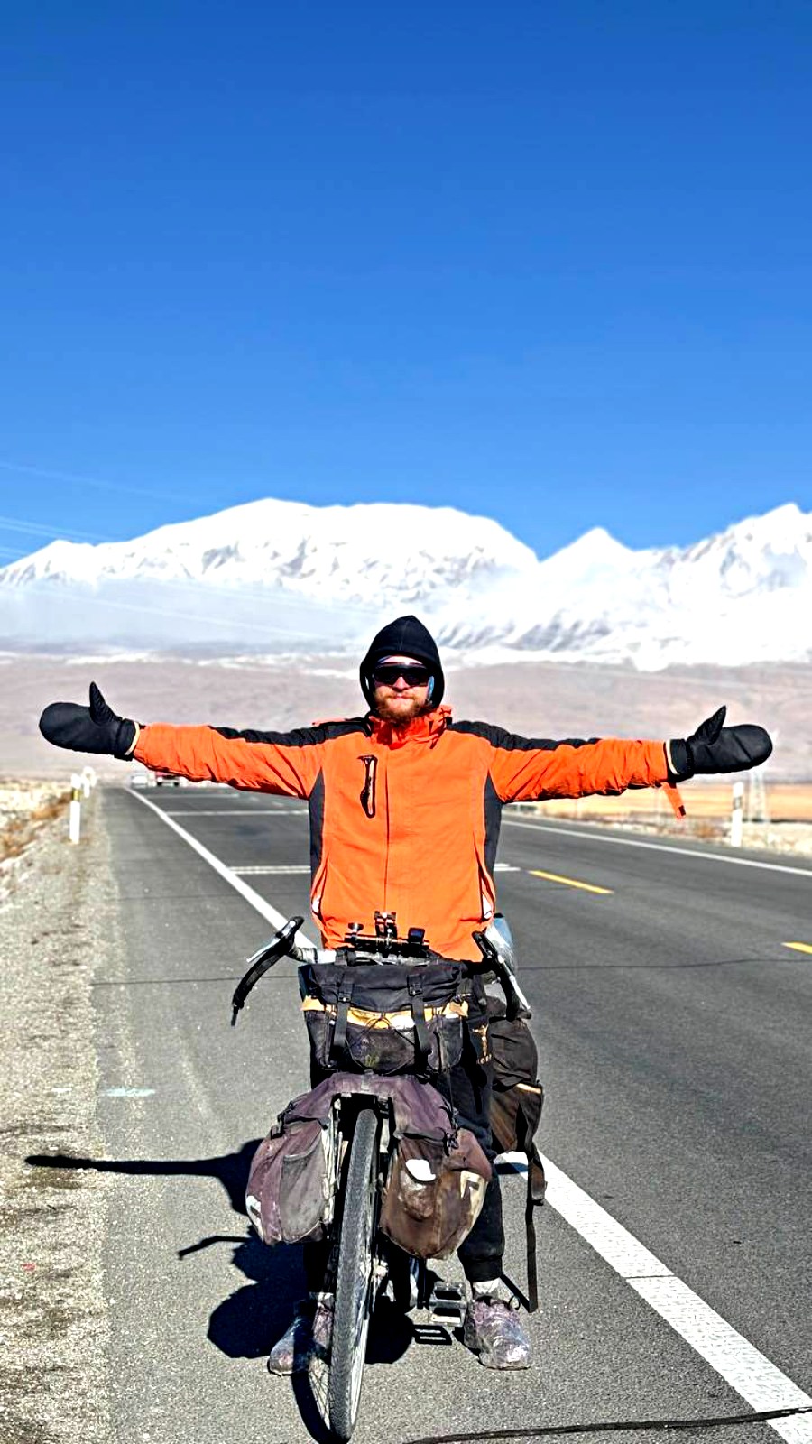 На велосипеде он пересек семь стран, покорив одни из самых экстремальных дорог мира: живописный Памирский тракт и высочайшее международное шоссе Каракорум.