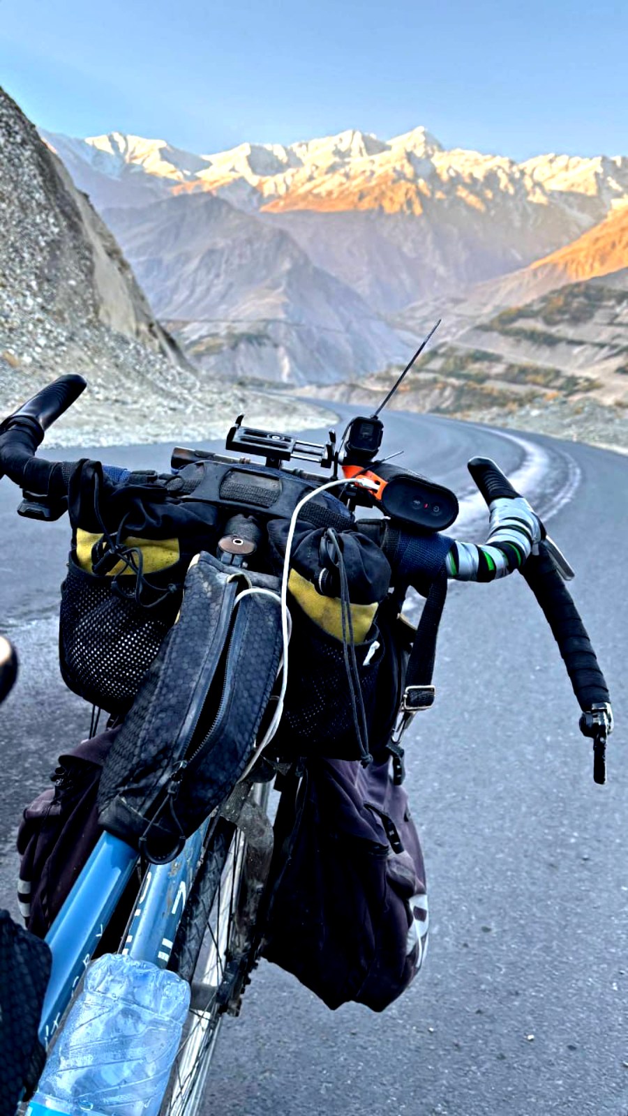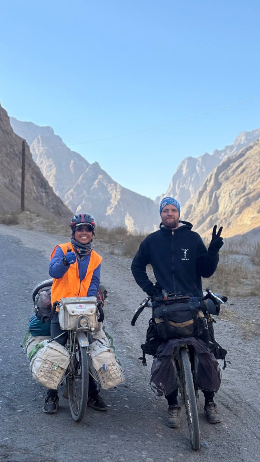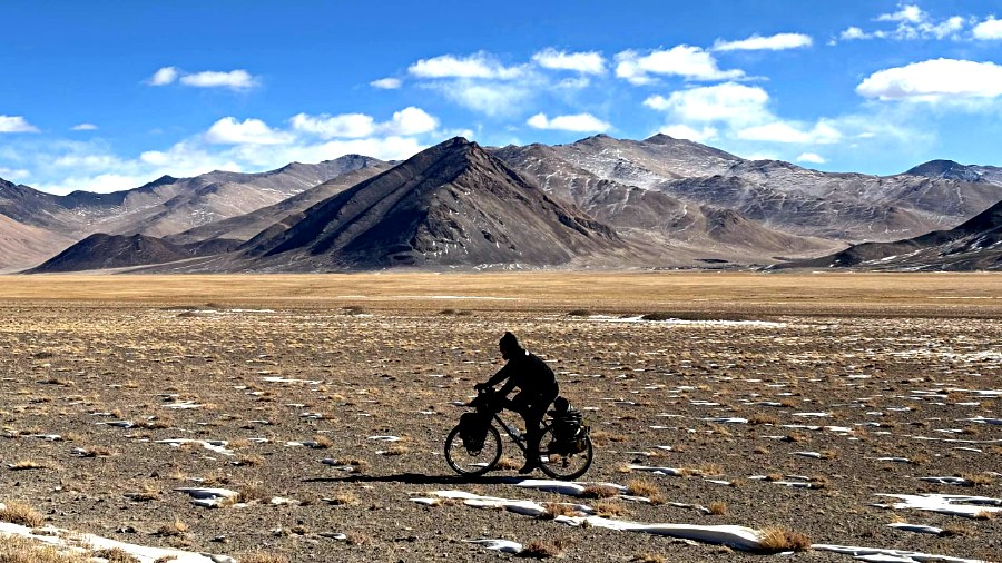 На велосипеде он пересек семь стран, покорив одни из самых экстремальных дорог мира: живописный Памирский тракт и высочайшее международное шоссе Каракорум.