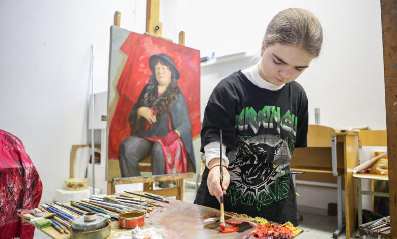 — В магазине вместо двух пачек печенья — 20, вместо трех пар брюк — десятки, а нам все мало. В потребительской гонке все чувства притупляются, — объясняет художница свою позицию и открывает дверь мастерской. Сегодня она студентка второго курса академии искусств. На вопрос, не уничтожит ли искусственный интеллект настоящего художника, отвечает: «Все, что создано руками человека, будет цениться».