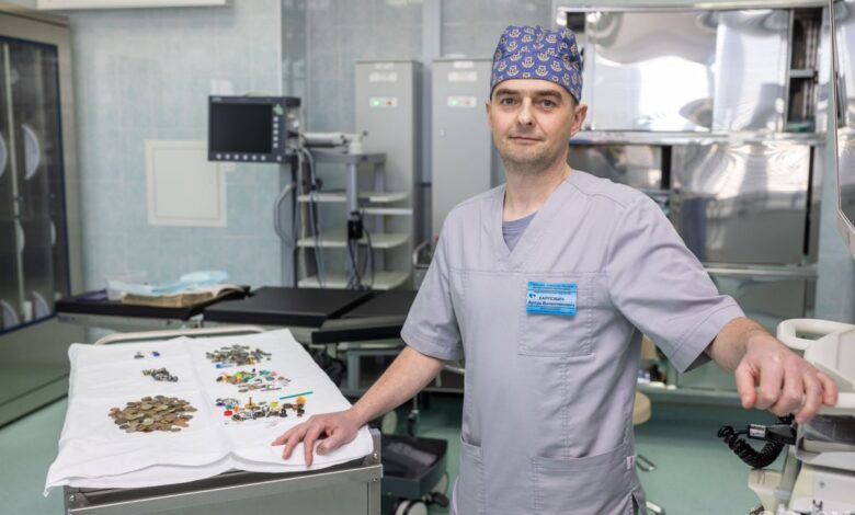 Чего только здесь нет. Батарейки, пуговицы, заколки, канцелярские кнопки и скрепки, пружинки, иголки, колпачки от ручек, магниты, биты‑насадки для шуруповерта… Напоминает ассортимент блошиного рынка, где товары отбираются по принципу «жалко выбросить — авось продам». А объединяет их то, что извлечены они из маленьких пациентов. В прямом смысле.