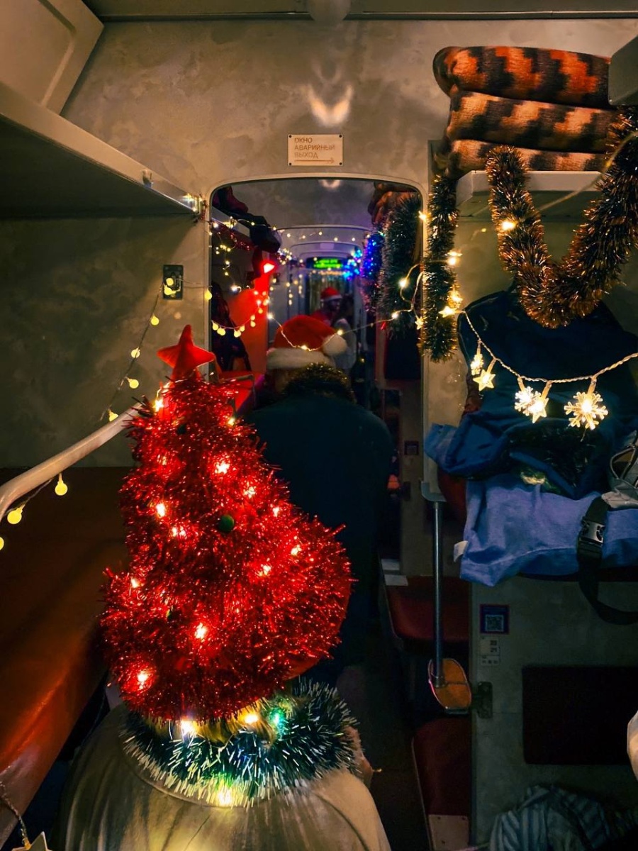 «Мы садились в Минске. Помимо нас, в вагоне было три человека. Один мужчина проспал всю дорогу, встретив Новый год лежа, а другая девушка всю дорогу провела в наушниках», – вспоминает Артем.