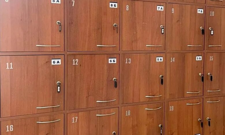 А вот уже где будут стоять сами ящики – у всех по-разному. Где-то размещены шкафчики, как в продуктовых магазинах, и каждый из них выделен под отдельный класс. Как будто самая надежная система.