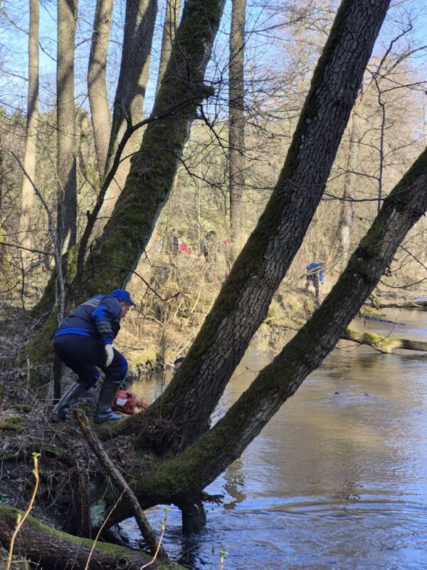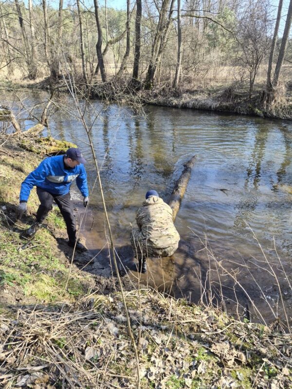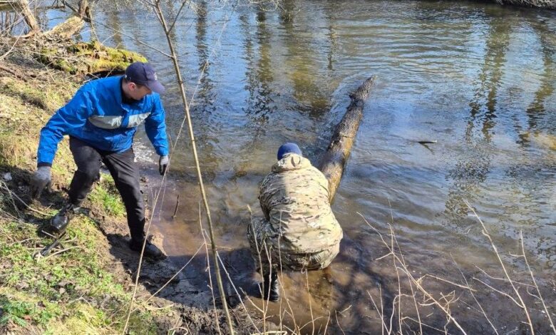 И вот они уже за работой. Самая тяжелая часть — вытаскивание из воды поваленных деревьев. Стволы, которые годами лежали в русле и мешали естественному течению, сейчас поднимают на берег. Параллельно добровольцы собирают бытовой мусор, оставленный отдыхающими, и аккуратно прореживают разросшуюся береговую растительность.