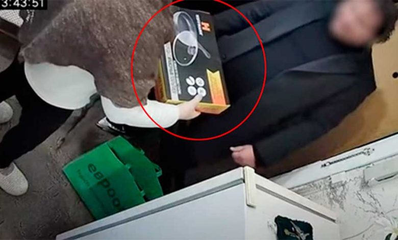 А теперь самое интересное — то самое видео. Смотреть его надо со звуком. К сожалению, мы не можем показать лицо «ходока», но, видя оригинал, подтверждаем: делец заметил камеру — «озарение» произошло где-то на десятой секунде нахождения в квартире. Мужчина даже почесал в раздумьях бровь. Но быстро поборол смущение и продолжил «дарить подарки».
