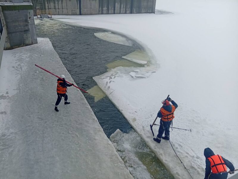 Режут лед и отогревают затворы: как на Гродненской ГЭС готовятся к весеннему паводку?