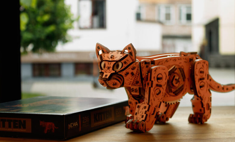 Сейчас компания производит порядка 350 изделий различной сложности и направленности. Это механические модели в виде конструкторов, статичные модели, интерьерные и классические пазлы, а также сувениры. Например, можно собрать целую кошачью семью. А для любителей техники разработали тягач с тремя видами прицепов на выбор.