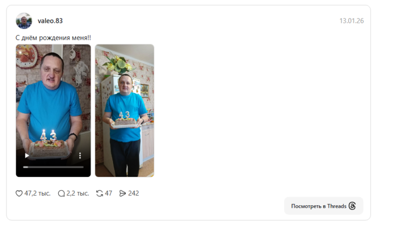 Threads сделал Валеру популярным после того, как он выложил видео со свечами и тортом в свой 43-й день рождения.